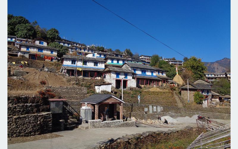 गण्डकी । एकै लहरमा ढुङ्गाले छाइएका आकर्षक घर । मौलिकता झल्काउने झ्यालढोका । रातोमाटो र कमेरोले लिपिए चिटिक्क पारिएका छन् ।