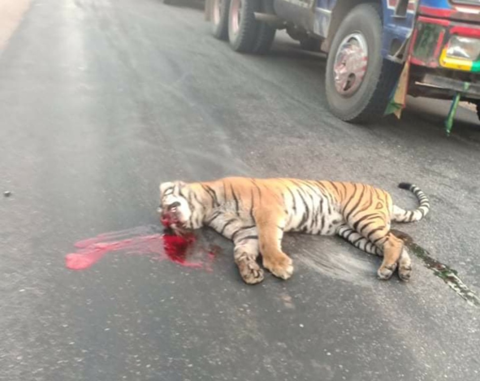पथलैया-अलेखगञ्ज सडकखण्डको आधाभार भन्ने स्थानमा जीपको ठक्करबाट पाटे बाघको ज्यान गएको हो ।