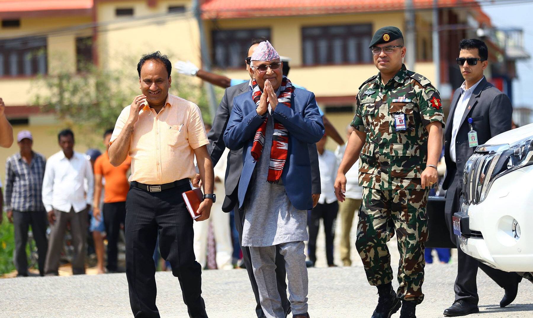 विमानस्थलबाट नेपाल राष्ट्र बैंकको विश्राम गृह पुगेका ओलीले केही समयपनि सोही ठाउँ नजिकै रहेको खुल्लामञ्चमा आयोजित सभालाई सम्बोधन गर्ने कार्यक्रम रहेको छ । सो कार्यक्रमलाई उद्योगमन्त्री लेखराज भट्टले समेत सम्बोधन गर्नेछन् ।