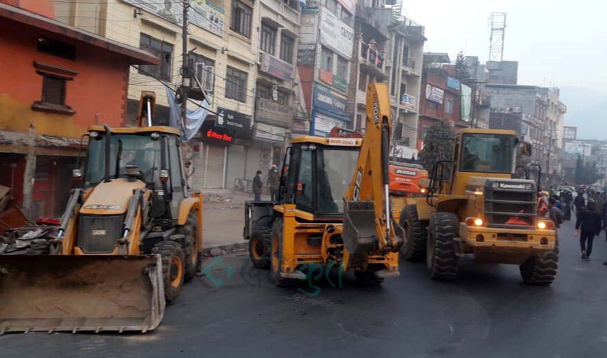 आज बिहानै देखि ठूलो संख्यामा प्रहरी परिचालन गरी बुटवलको ट्राफिक चोकबाट सडक मिचेर बनाएका घर टहर भत्काउन सूरु गरेको छ ।अतिक्रमित क्षेत्रको मध्यखण्ड बुटवलको टाफिक चोकमा रहेको दुर्गा मन्दिरको सटर र त्यस आसपासमा रहेका घरहरुमा डोजर चलाइएको छ ।