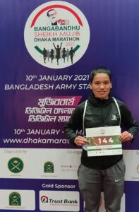 काठमाडौं । नेपाली धाविका पुष्पा भण्डारीले बंगबन्धु शेख मुजिब ढाका म्याराथनमा आइतबार स्वर्ण जितेको नेपाल एथलेटिक्स संघका सचिव आरके विष्टले जनाएका छन् । महिलातर्फ निर्धारित दूरी पुष्पाले २ घण्टा ५९ मिनेट ३ सेकेन्डमा पूरा गरिन् । पुष्पामाले २०७६ साल मंसिरमा नेपालमा भएको १३ औं दक्षिण एसियाली खेलकुद ९साग० मा रजत जितेकी थिइन् ।