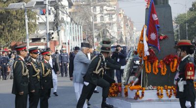 काठमाडाैं । राष्ट्रपति विद्यादेवी भण्डारीले २९९ औँ पृथ्वीजयन्ती तथा राष्ट्रिय एकता दिवसका अवसरमा नेपाल एकीकरण अभियानका नायक पृथ्वीनारायण शाहप्रति श्रद्धासुमन अर्पण गर्दै स्वदेश तथा विदेशमा रहेका सम्पूर्ण नेपाली दिदीबहिनी तथा दाजुभाइमा शुभकामना व्यक्त गरेकी छन ।