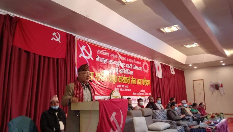 नेपालगन्ज । नेपाल कम्यूनिष्ट पार्टी (नेकपा) का प्रचण्ड -नेपाल पक्षका अध्यक्ष माधव कुमार नेपालले केपी अोलीको घमण्डका कारण जुटेको नेकपा विभाजित भएको बताएका छन् । आईतबार बाँकेको नेपालगन्जमा आयोजित अगुवा कार्यकर्ता प्रशिक्षण कार्यक्रममा बोल्दै पुर्वप्रधानमन्त्री समेत रहेका अध्यक्ष नेपालले प्रधानमन्त्री ओलीलाई दुर्योधन जस्तै अर्काको कुरा नसुन्ने घमण्डी, पाखण्डी, अत्याचारी र तानाशाही प्रवृत्तीका नेता भएको बताए ।