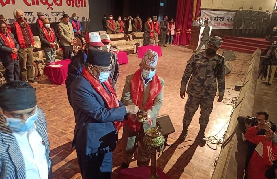 कार्यक्रममा नेकपा अर्का अध्यक्ष माधवकुमार नेपालले केपी ओलीलाई प्रधानमन्त्रीको पद छोड्न या कामचलाउ भएको स्वीकार गर्नुपर्ने बताए ।