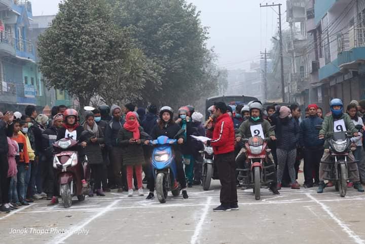 नेपालगञ्ज । तिब्र गतिमा मोटरसाइकल चलाउने कार्यलाई निरुत्साहित गरेर दुर्घटनालाई न्यूनिकरण उदेश्यले शुक्रबार नेपालगञ्जमा आयोजना गरिएको स्लो बाईक प्रतियोगिताको प्रथम उपाधी आशिष श्रेष्ठले हात पारेका छन् ।