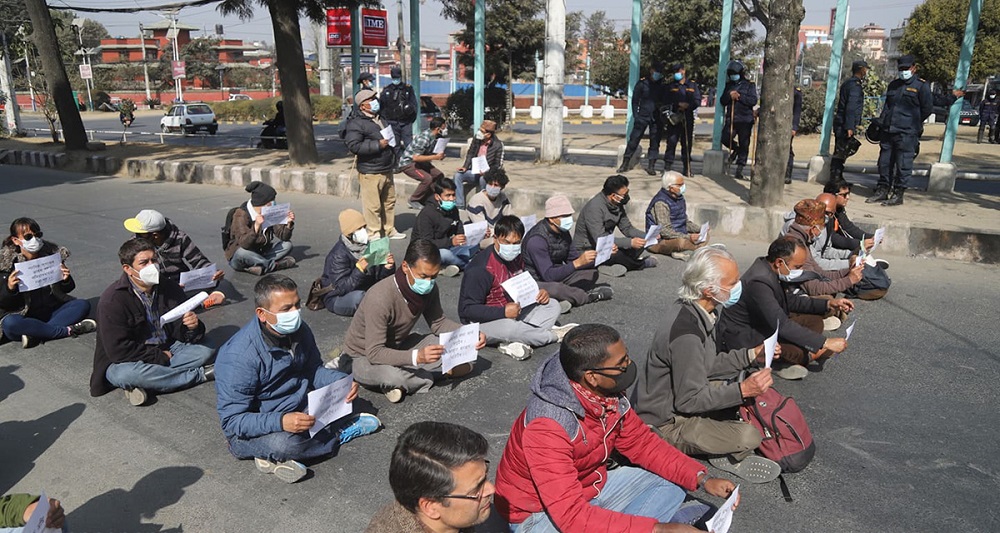 काठमाडौं । प्रतिनिधिसभा विघटनको विरोधमा बृहत् नागरिक आन्दोलन–२०७७ र चिकित्सा शिक्षा सुधार अभियन्ता गोविन्द केसीसहितको समूहले माइतीघर मण्डलामा धर्नासहितको प्रदर्शन रेको छ ।