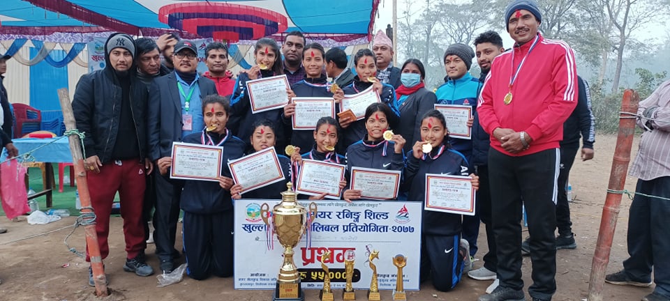 बुटवल । तिलोत्तमा सम्पन्न दोस्रो उपमेयर रनिङ शिल्ड खुल्ला महिला भलिबल प्रतियोगिता-२०७७ को उपाधि कुवरवर्ति माविले हात पारेको छ ।