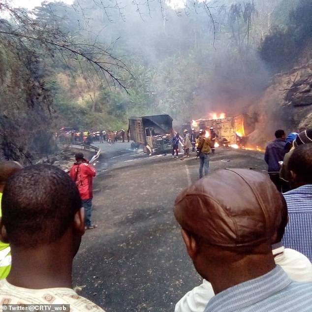 “दुर्घटनामा परी मृत्यु भएकाहरूको शव जलेको अवस्थामा रहेको छ, उनीहरूको पहिचान गर्न सकिएको छैन,” स्थानीय गभर्नर अवा फोङ्का औगस्टीनले भने । स्थानीय समयअनुसार दिउँसो ३ः३० बजे दुर्घटना भएको अधिकारीहरूले जनाएका छन् । दुर्घटनामा परेको बसमा ७० सिट रहेको थियो ।