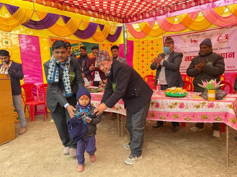 पहिलो पाईलाद्धारा २ सय बढि बालबालिकालाई न्यानो कपडा बितरण