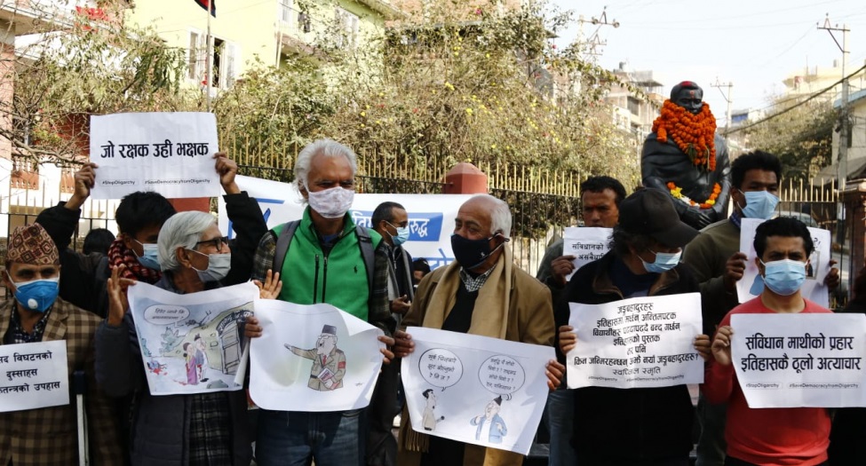 काठमाडौं । प्रतिनिधि सभा विघटनको विरोधमा समाजका विभिन्न क्षेत्रका व्यक्तिहरुले सिर्जनात्मक रुपमा आन्दोलन गरेका छन् ।
