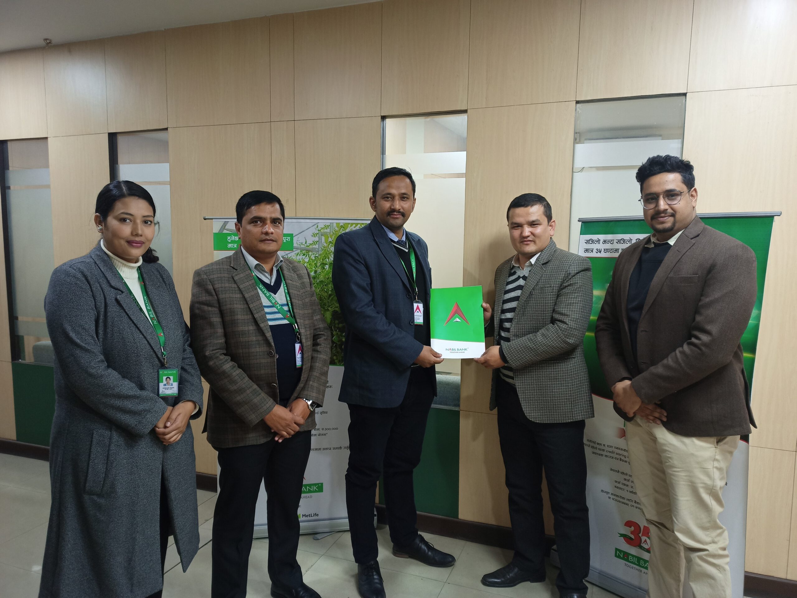 बैंकका एस.एम.ई तथा लघुबित्त प्रमुख निरज कुमार बस्नेत (डनिल), र उपाय सर्भिसेसका महाप्रबन्धक राजु के.सीले सम्झौता, पत्रमा हस्ताक्षर गरेका छन् ।