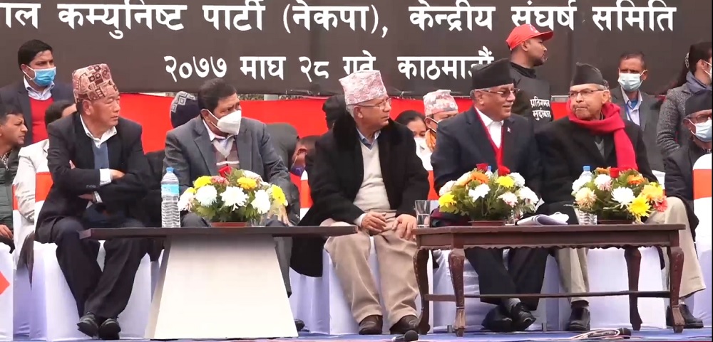 काठमाडौं । प्रचण्ड-नेपाल नेतृत्वको नेपाल कम्युनिष्ट पार्टी नेकपाको आयोजनामा काठमाडौंमा विरोधसभा सुरु भएको छ ।