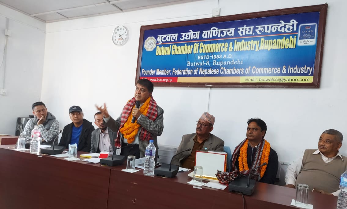बुटवल । नेपाल उद्योग बाणिज्य महासंघका वरिष्ठ उपाध्यक्ष चन्द्र प्रसाद ढकालले स्थानीय रुपमा सम्भावित व्यावसायहरु पहिचान गरेर उद्योग व्यवसायको क्षेत्रलाई थप अगाडि बढाउन आग्रह गरेका छन् ।