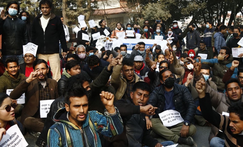 विश्वविद्यालयका विद्यार्थीहरुले प्रधानमन्त्री केपी शर्मा ओलीविरुद्ध नाराबाजी गरिरहेका छन् । धर्नामा त्रिविका प्राध्यापकहरु पनि सहभागी भएका छन् ।