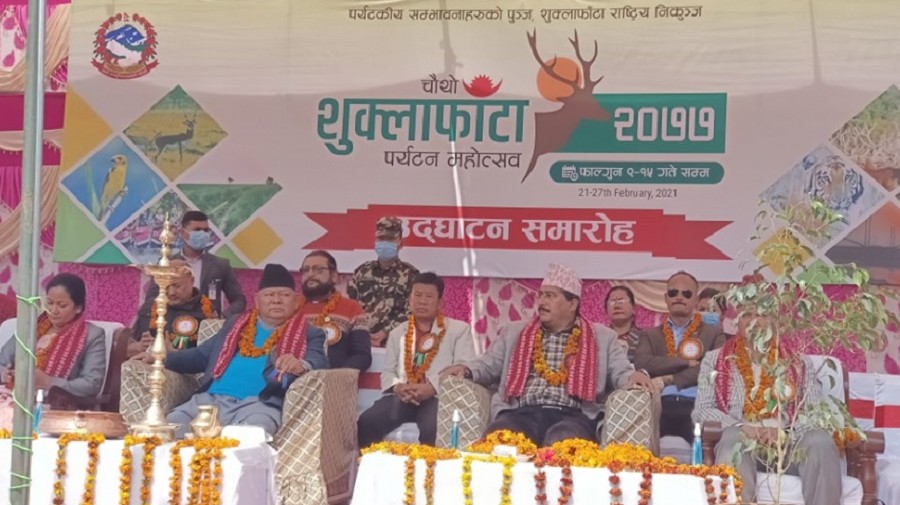 कञ्चनपुर । शुक्लाफाँटा राष्ट्रिय निकुञ्जको पर्यापर्यटन प्रवद्र्धन गर्ने उद्देश्यले आइतबारदेखि चौथो शुक्लाफाँटा पर्यटन महोत्सव सुरू भएको छ । ‘पर्यटकीय सम्भावनाको पुञ्ज, शुक्लाफाँटा राष्ट्रिय निकुञ्ज’ भन्ने नारासहित सुरू भएको महोत्सव एक सातासम्म सञ्चालन हुनेछ ।