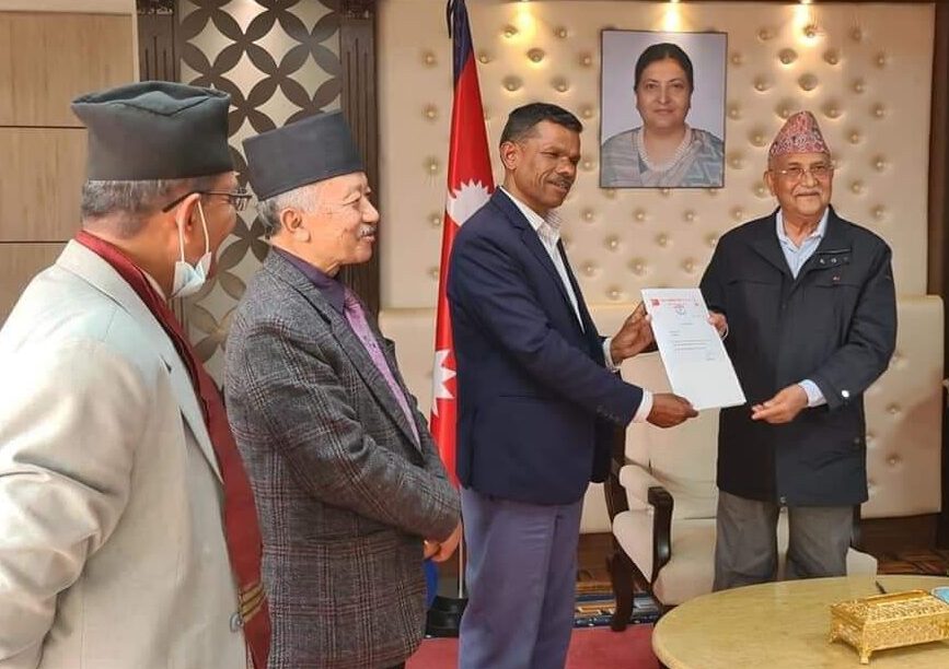 नेकपाको विधान अनुसार दलको नेताले उपनेता, प्रमुख सचेतक र सचेतक मनोयन गर्ने व्यवस्था रहे पनि नेकपाका बुहमत सांसदहरुले ओलीलाई संसदीय दलको नेताबाट यसअघि नै हटाइसकेका छन् । प्रधानमन्त्री ओलीले प्रतिनिधिसभा विघटन गरे लगत्तै प्रचण्ड–नेपाल पक्षले दलको अलग्गै बैठक बसेर पुष्पकमल दाहाललाई दलको नेता चयन गरेका थियो ।