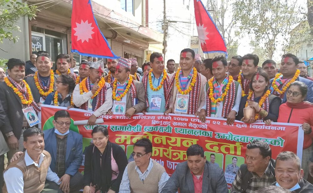 प्रचण्ड-नेपाल पक्षका व्यापारी नेता विष्णु प्रसाद खनाल नेतृत्वमा साझा समाबेशी प्यानल बनाउँदै कोहलपुरमा उद्योग बाणिज्य संघमा दुई नेकपा सहित राष्ट्रिय जनमोर्चाको संयुक्त प्यानल बनाएर निर्वाचनमा भाग लिएका छन् ।