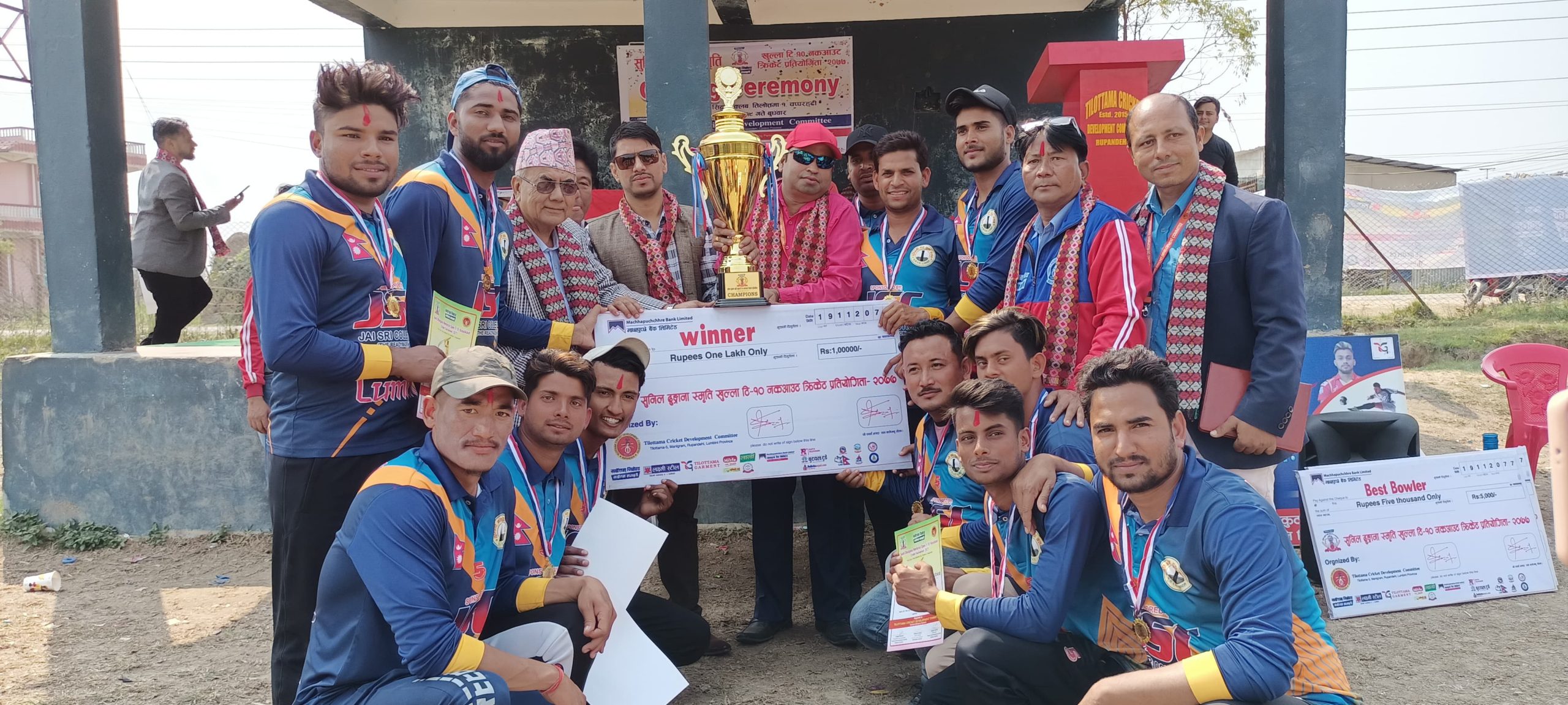 आयोजक तिलोत्तमा क्रिकेट बिकास समितिका अध्यक्ष दिपक शर्मा भुर्तेलको अध्यक्षता, सर्बोत्तम सिमेन्टका क्षेत्रिय बजार व्यावस्थापक रमेश ढकालको प्रमुख आतिथ्यता र खेल संयोजक कमल श्रेष्ठको स्वागतमा सम्पन्न कार्यक्रमको संचालन तिलोत्तमा क्रिकेट बिकास समितिका उपाध्यक्ष राजेन्द्र केसीले गरेका थिए ।