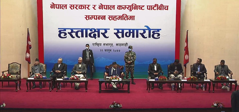 राष्ट्रिय सभागृहमा सरकार र विप्लव समुहबीच हस्ताक्षर समारोह सुरु