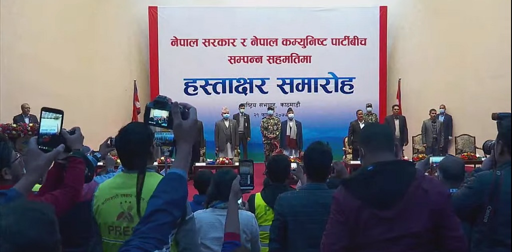 प्रधानमन्त्री केपी शर्मा ओली र विप्लवको उपस्थितिमा शुक्रबार हस्ताक्षर सम्पन्न भएको हो ।