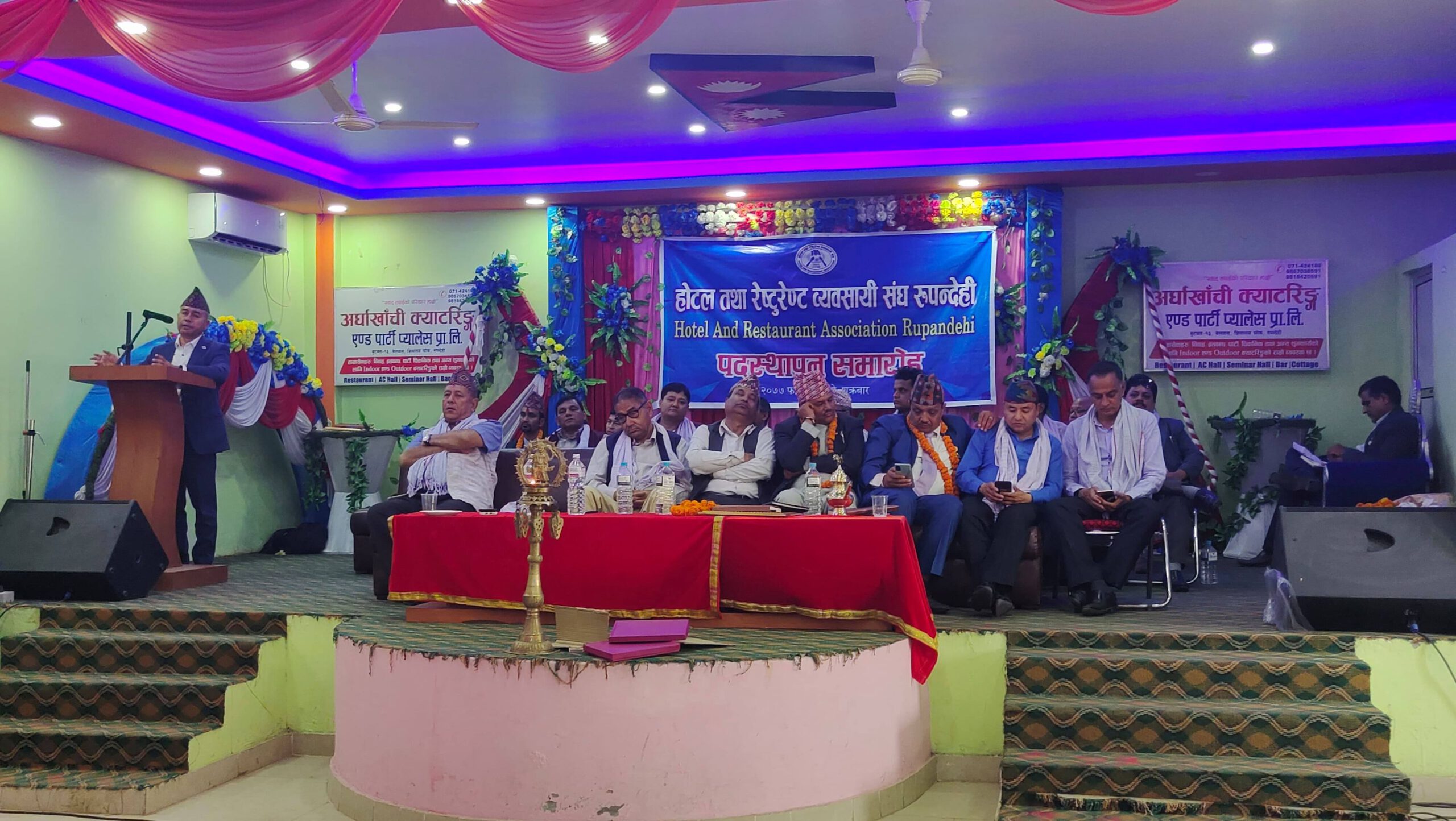 बुटवल । होटल तथा रेष्टुरेन्ट व्यवसायी संघ रुपन्देहीको २० औं साधारण सभा तथा १० औं अधिवेशनबाट निर्वाचित नया नेतृत्वलाइ पद हस्तान्तरण गरिएको छ ।