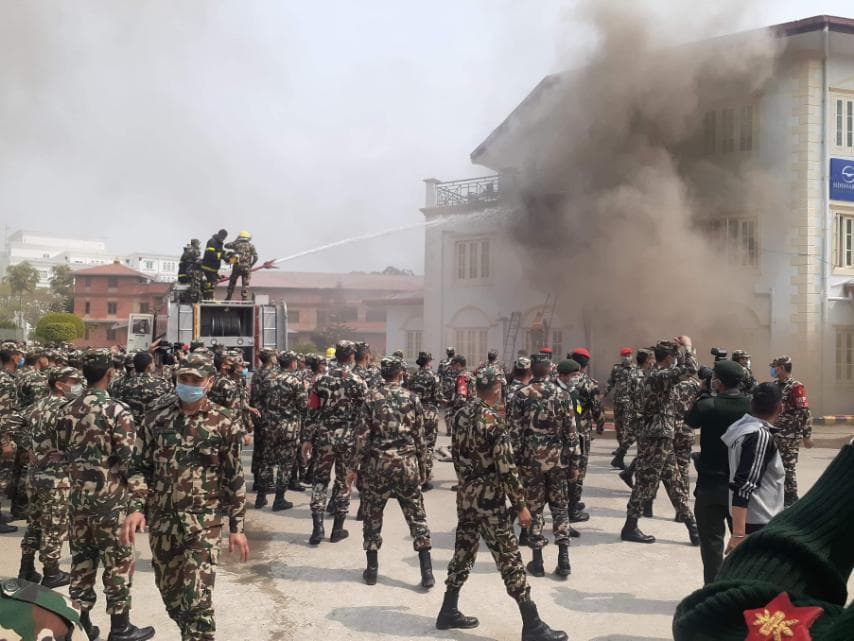 आगो निभाउन सेनाकै एउटा दमकल र दुईवटा पानी ट्यांकर, काठमाडौं महानगरका दुईवटा दमकल प्रयोग गरिएको थियो । नेपाली सेनाका डेढ सय भन्दा बढी सैनिक पनि आगलागी निभाउन जुटेका थिए ।