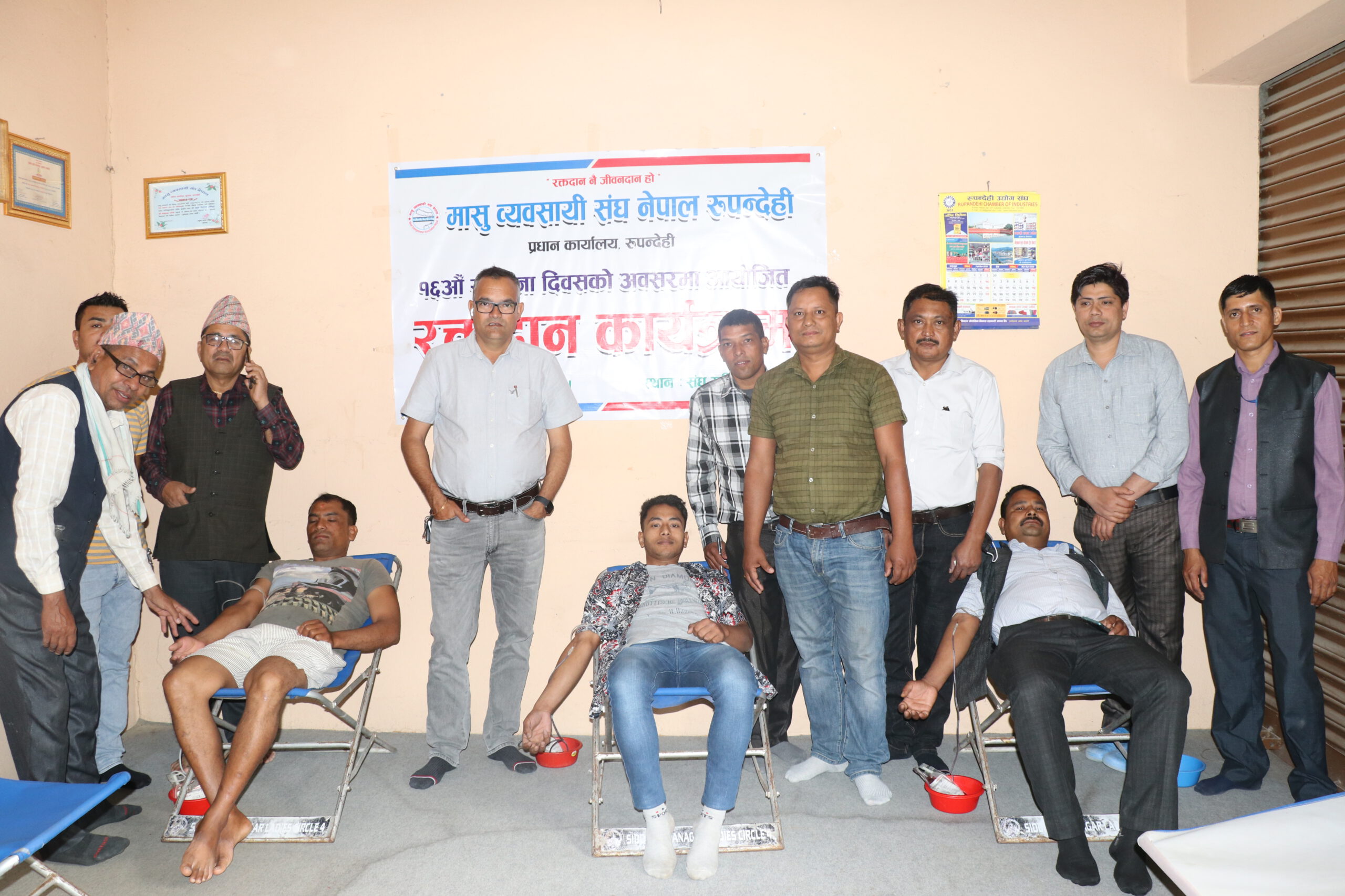 बुटवल । मासु व्यवसायी संघ रुपन्देहीले स्थापना दिवसको अवसरमा बुटवलमा रक्तदान कार्यक्रम सम्पन्न गरेको छ ।