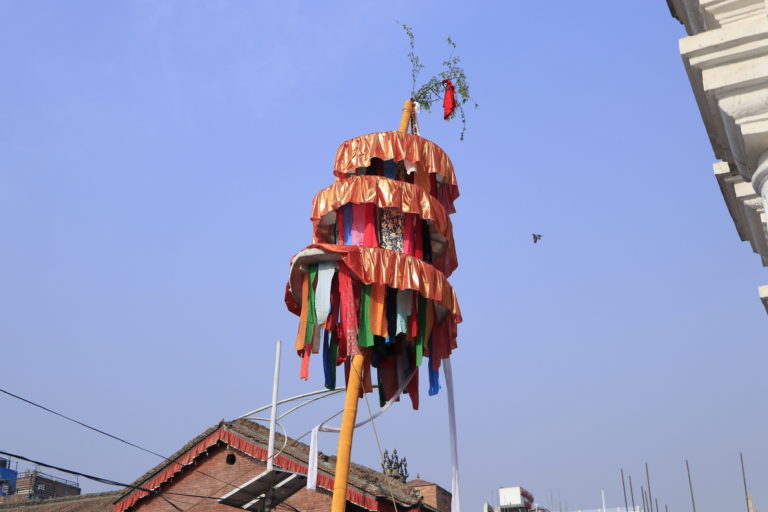वसन्तपुरस्थित गद्दी बैठकको दक्षिणतर्फ बिहान ८ स् २६ मा तीन छत्रे होलीको चीर ठड्याइएपछि देशभर होलीको पर्वको विधिवत सुरुवात भएको हो ।