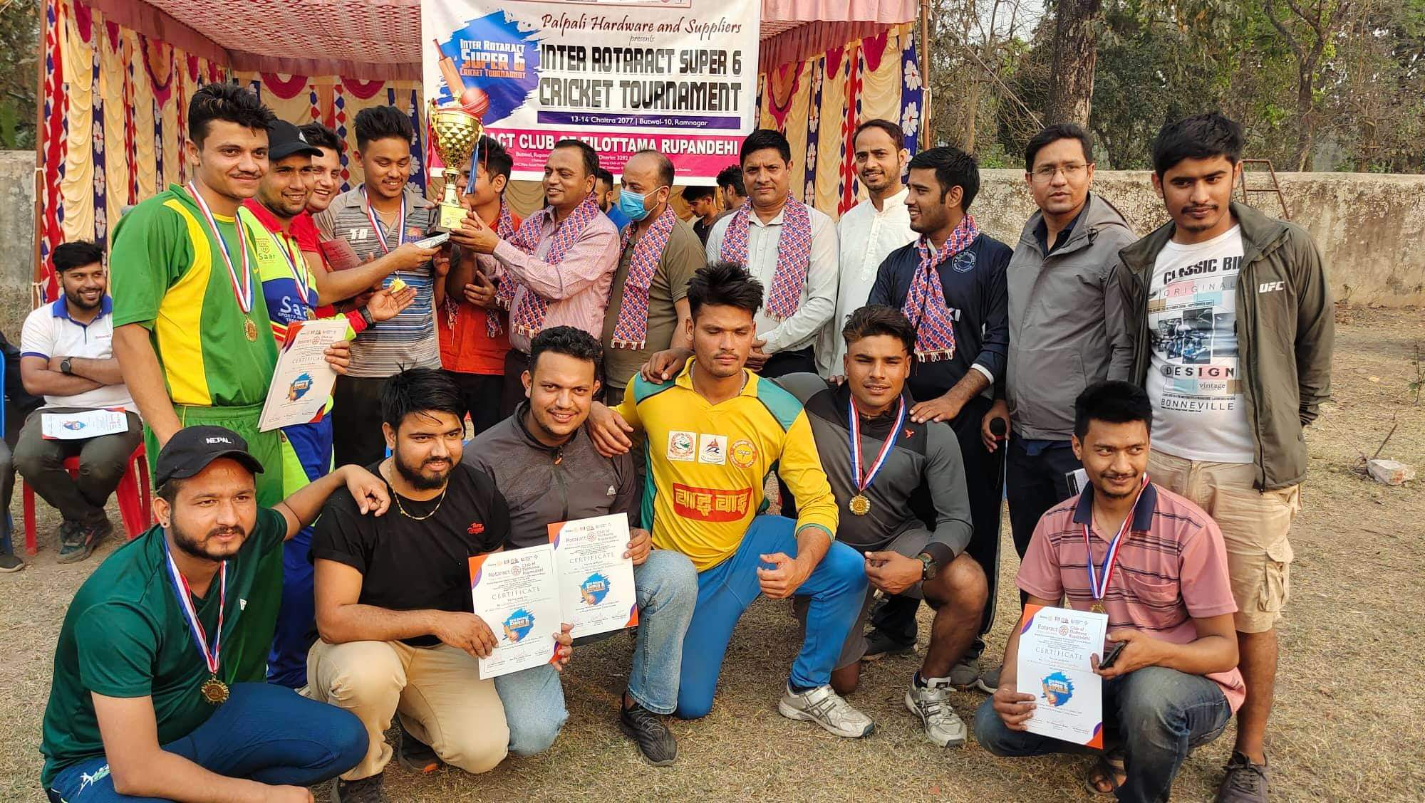 एक समारोहका बिच रोटरी ईन्टरनेश्नल ३२९२ नेपाल भुटान जोन १९ एजी खिमानन्द भुषाल, रोटरी क्लब अफ तिलोत्तमा रुपन्देहीका अध्यक्ष गोपाल ज्ञवाली, आयोजक क्लबका संस्थापक अध्यक्ष मोहन न्यौपाने, क्लबका अध्यक्ष सुभाष केसी, विक्रम क्षेत्रीले विजेता, उपविजेता टिम तथा उत्कृष्ट खेलाडीहरुलाई पुरस्कार वितरण गरेका थिए ।