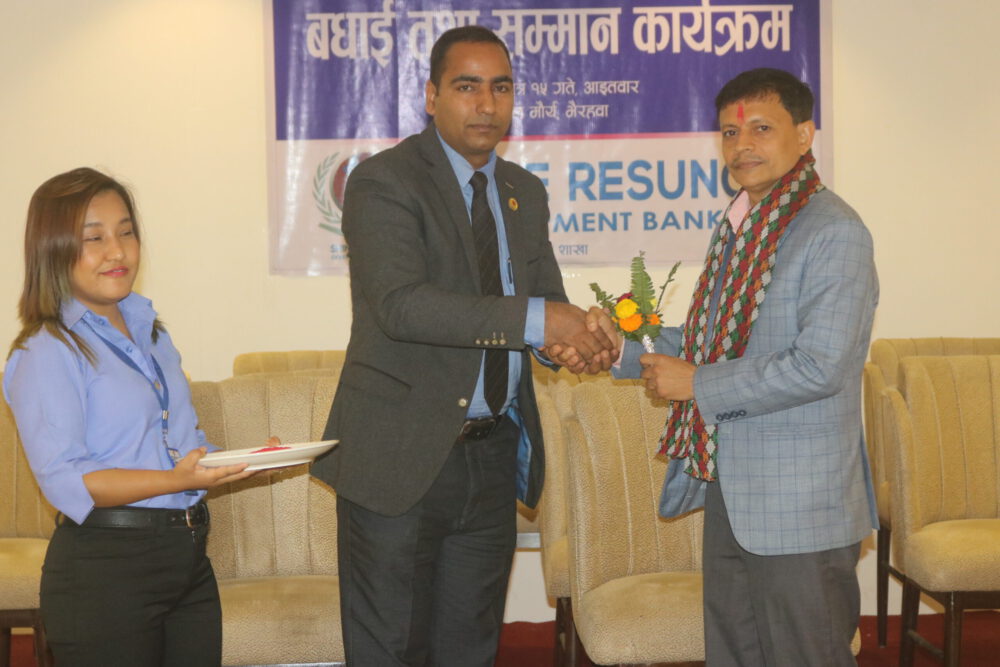 साइन रेसुंगा बैंकद्वारा सिद्धार्थ उद्योग वाणिज्य संघका नवनिर्वाचित कार्यसमितिलाई सम्मान