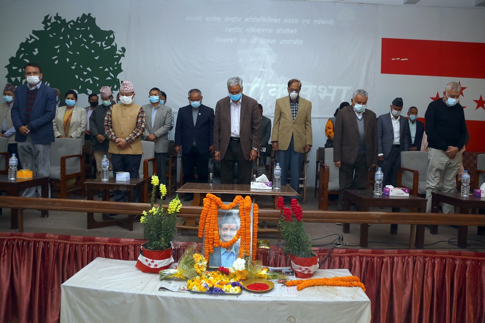 स्वर्गीय जोशीको १३औँ पुण्यतिथिका अवसरमा कांग्रेस केन्द्रीय समितिले आज पार्टी केन्द्रीय कार्यालय सानेपामा आयोजना गरेको शोकसभामा बोल्दै सभापति देउवाले स्व जोशी भविष्यमा पार्टी हाँक्नसक्ने नेता भएको बताए ।