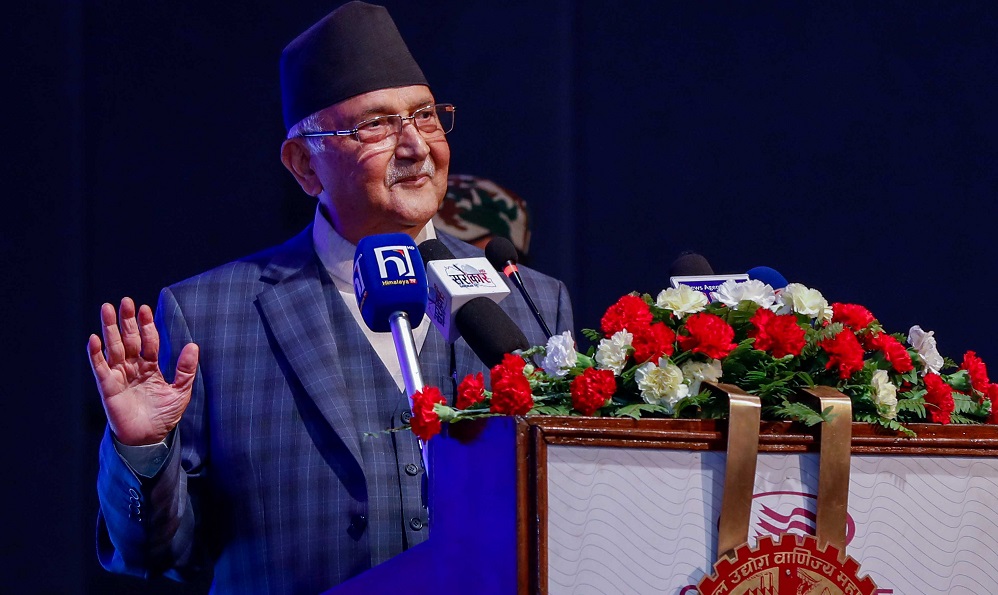 नेपाल उद्योग वाणिज्य महासङ्घको ५५औं वार्षिक साधारणसभा तथा उद्योग वाणिज्य दिवसका अवसरमा शनिबार राजधानीमा आयोजित कार्यक्रमलाई सम्बोधन गर्दै प्रधानमन्त्री ओलीले व्यापार घाटा घटाउन उल्लेखनीय सफलता प्राप्त नभए पनि त्यसमा क्रमिक सुधार आएको बताए ।