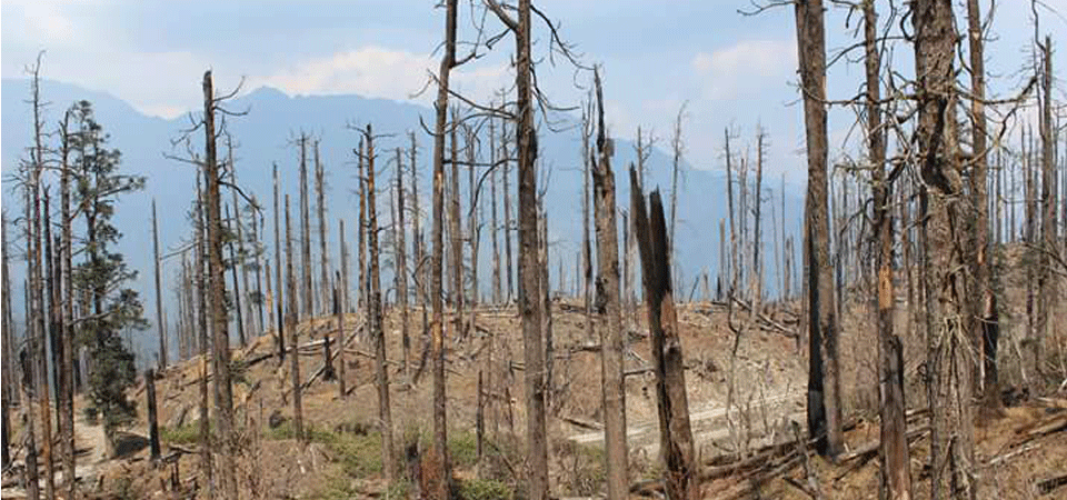 ठाडै सुकेका रुखका कारण वन नै उजाडियो