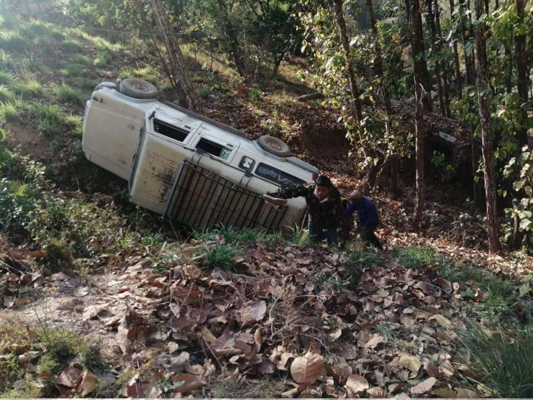 मित्याल रामपुर सडक खण्ड अन्तरगत कच्चि सडकमा खादारबाट रामपुरतर्फ जाँदै गरेको ग १ ज ५७११ नम्बरको जीप दुर्घटना भएको हो ।