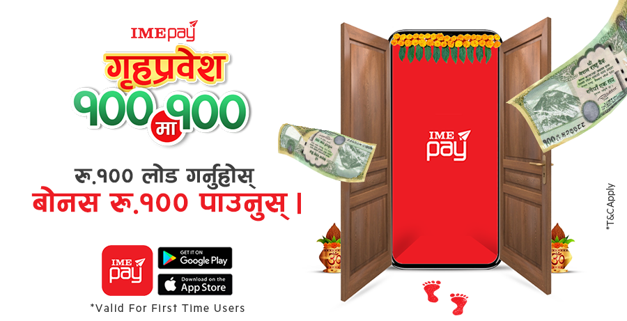 आइएमई पेको अफर : नयाँ एप प्रयोगकर्तालाई गृहप्रवेश अन्तर्गत सयमा सय बोनस