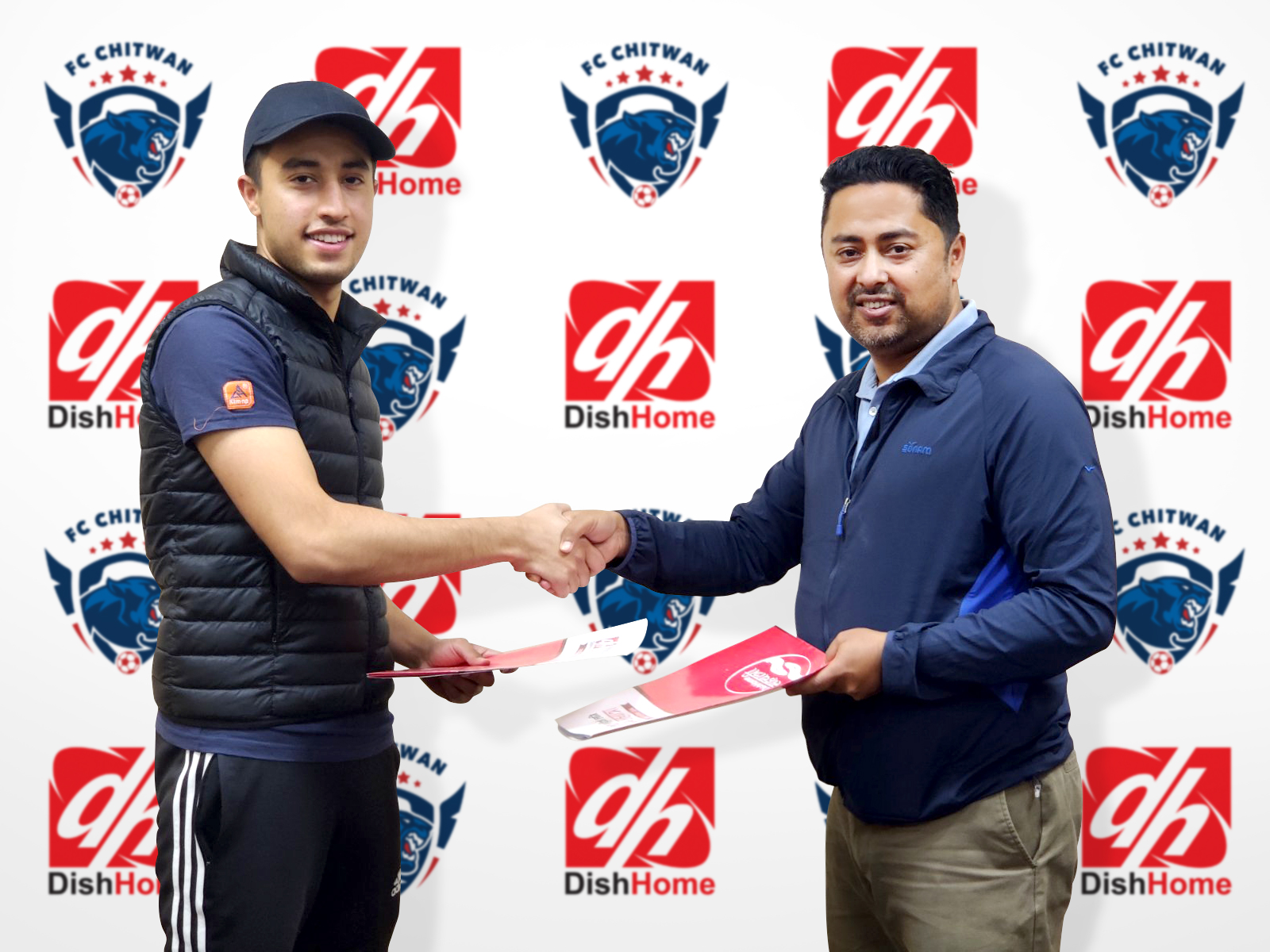 डिशहोमका प्रबन्ध निर्देशक सुदिप आचार्य र एफ सि चितवनका अध्यक्ष सचिन ढकालले डिशहोमद्धारा एफ सि चितवनलाई प्रायोजन गर्ने सम्झौतापत्रमा हस्ताक्षर