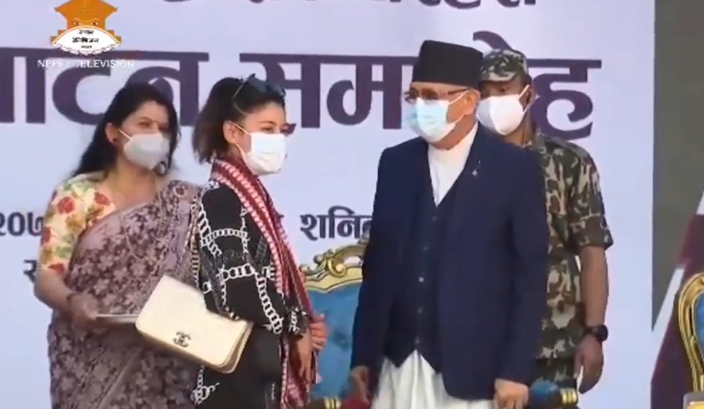 धरहराबाट खसेकी रमिलालाई प्रधानमन्त्री ओलीको सम्मान