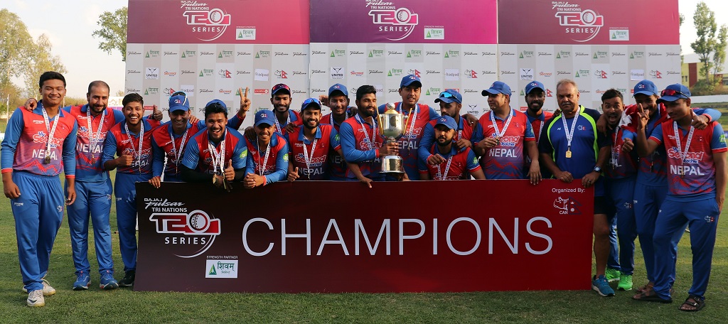 काठमाडौं । त्रिकोणात्मक टी-२० सिरिजको उपाधि नेपालले जितेको छ । शनिबार टियु क्रिकेट मैदानमा भएको फाइनल खेलमा नेपालले नेदरल्याण्डलाई १४२ रनले हराउँदै उपाधि हात पारेको हो ।