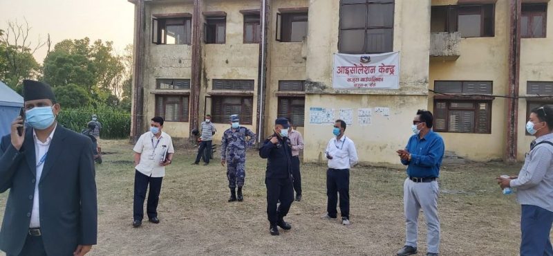 खजुरामा रहेको जनक शिक्षा सामाग्रीको भवनमा निर्माण गरिएको आइसोलेसनको बाँकेका प्रमुख जिल्ला अधिकारी शिवराज गेलाल, प्रहरी प्रमुख ओम रानालगयत सुरक्षा अधिकारीले अवलोकन गरेका थिए ।