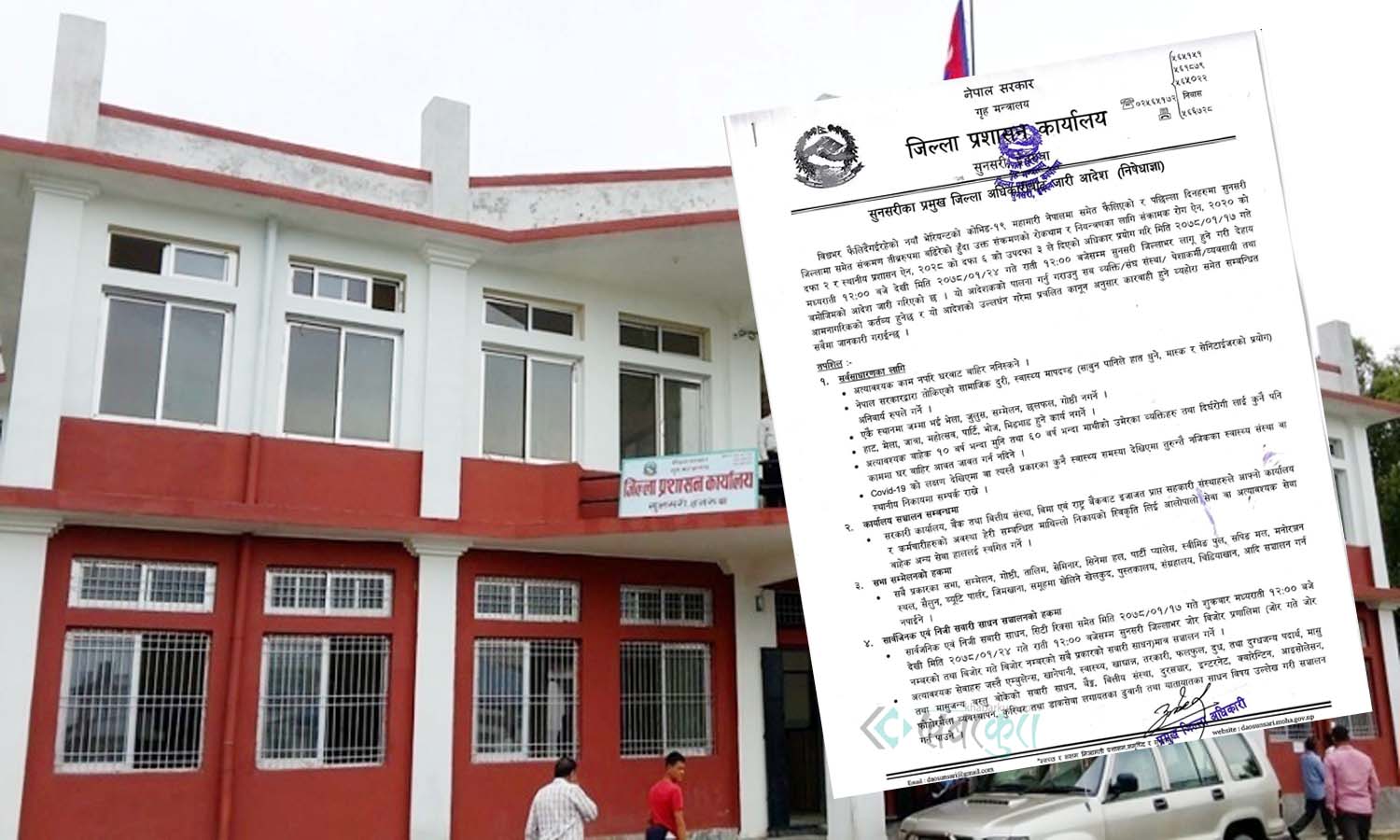 सुनसरी । कोरोना संक्रमण तीव्र गतिमा फैलन थालेसँगै सुनसरी जिल्ला प्रशासनले शुक्रबारदेखि लागु हुने गरी निषेधाज्ञा जारी गरेको छ ।