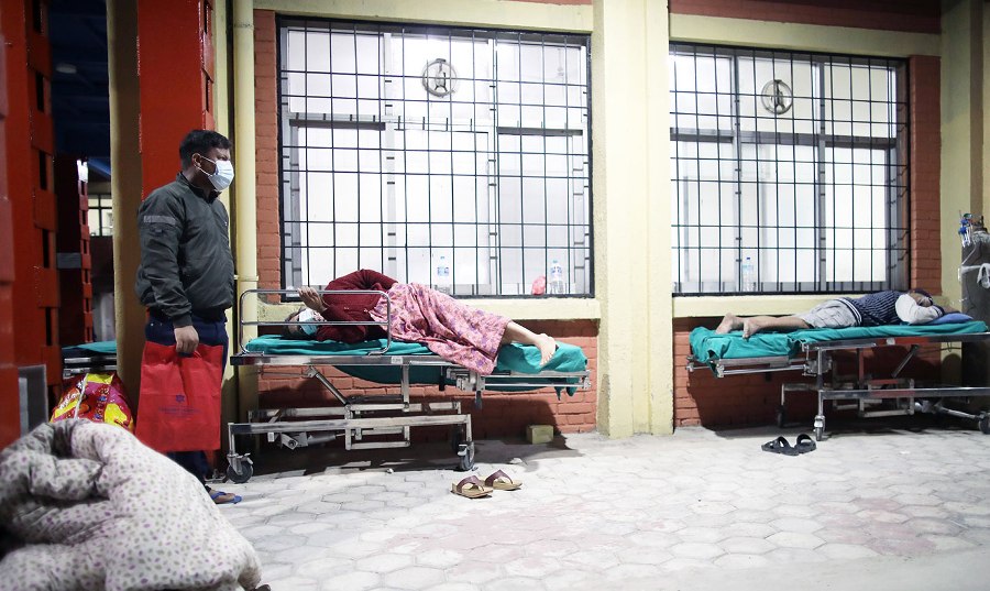 काठमाडौं । कोरोना संक्रमितको उपचारका लागि छुट्याइएका बेड भरिएपछि महाराजगन्जस्थित त्रिवि शिक्षण अस्पतालले बिरामीलाई बरन्डामै राखेर उपचार गर्न थालेको छ ।