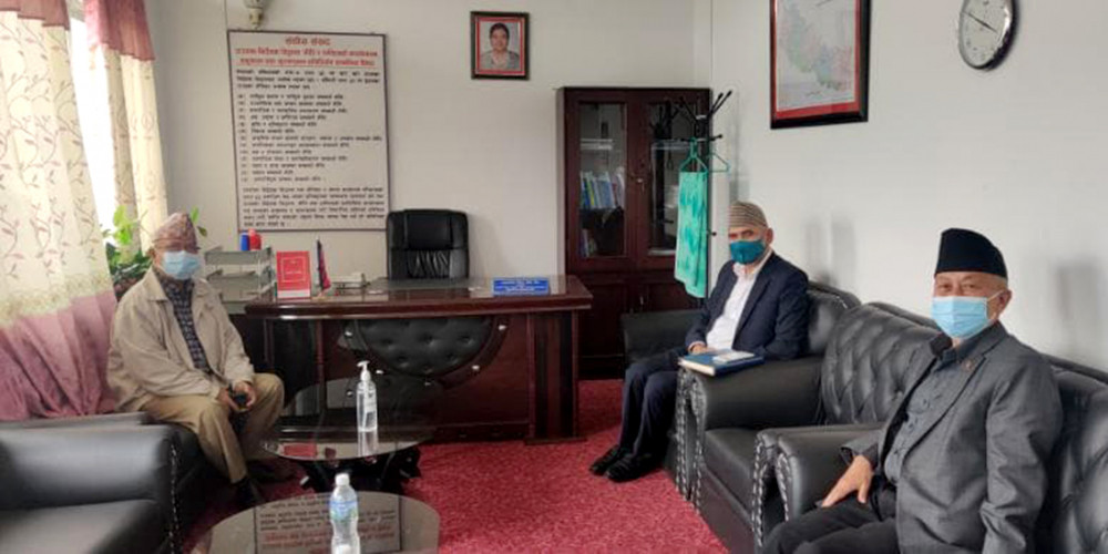 यसैबीच अध्यक्ष ओलीले नेता नेपासँग छलफल गर्न विष्णु पौडेल र सुवास नेम्वाङलाई पठाएका छन् । सिंहदरबारमै रहेका पौडेल र नेम्वाङले नेपालसँग गरेका छन् । राजीनामाको तयारीसहित नेपाल पक्षीय सांसदहरु संसद सचिवालयमा भेला हुन थालेपछि पौडेल र नेम्वाङले नेता नेपालसँग छलफल गरेका हुन् ।