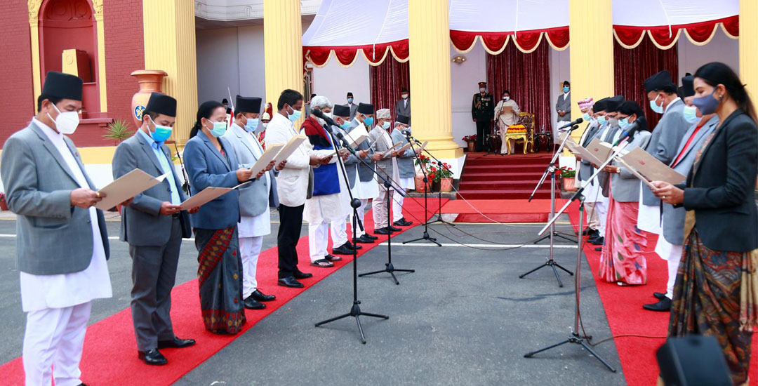 संविधानको धारा ७६ ३ अनुसार प्रधानमन्त्रीमा पुनः सपथ लिएका ओलीले नवनियुक्त मन्त्रीहरुलाई पद तथा गोपनीयताको सपथ खुवाएका छन् । मन्त्रीहरुले साविककै मन्त्रालयको जिम्मेवारी पाएका छन् ।