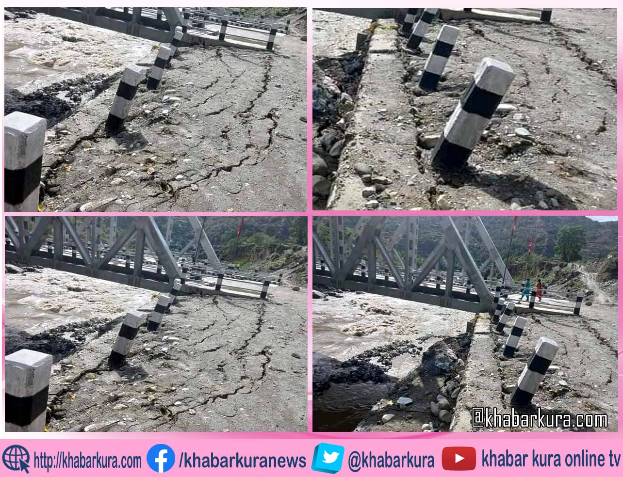 बझाङ । यातायात संचालन भएको दुई महिना नबित्दैं पानकोट मोटररेबल पुल चर्किएको छ ।