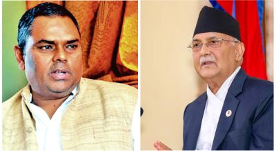 तर, ओलीलाई समर्थन गर्ने र सरकारमै सहभागी हुने विषयले जसपा भने फुटको अन्तिम अवस्थामा पुगेको छ । एमाले सांसद महेश बस्नेतको योजनामा भक्तपुरको डोलेश्वरमा पुगेर राजेन्द्र महतोलाई संसदीय दलको विधान विनै दलको नेता चयन गरेको यो समुह उपेन्द यादव पक्षसँग छुट्एिरै भए पनि यतिबेला प्रधानमन्त्री ओलीसँग नजिक बनेको छ ।