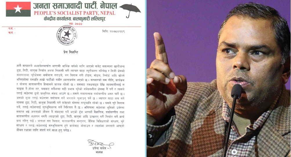 काठमाडौं । जनता समाजवादी पार्टीका अध्यक्ष उपेन्द्र यादवले व्यापार घाटा कम गर्ने नाममा ढुंगा, गिटी, बालुवा निकासी गर्ने बजेट घोषणा राष्ट्रघाती भएको टिप्पणी गरेका छन् ।