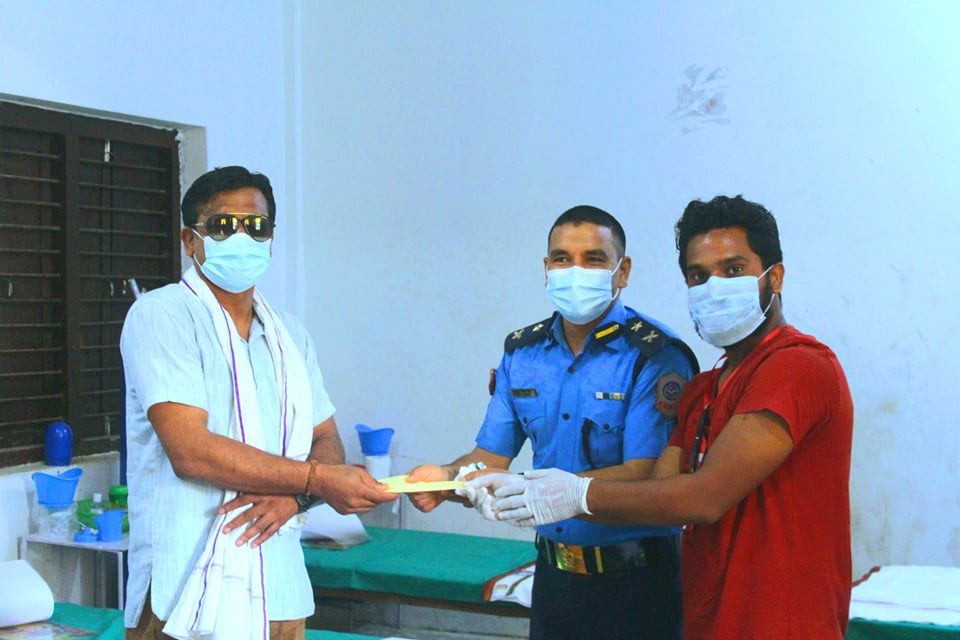 डीएसपी भाटले बरहथवा–१०,सीतापुरस्थित आइसोलेसन केन्द्रमै पुगेर आफ्नो मासिक तलबको आधा तलब बराबरको २५ हजार नगद सहयोग गरेका हुन् ।
