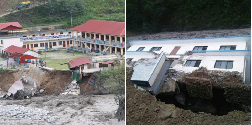 सिन्धुपाल्चोकमा बाढी : दुईवटा स्कूल र हेलम्बुको प्रहरी चौकी बगायो