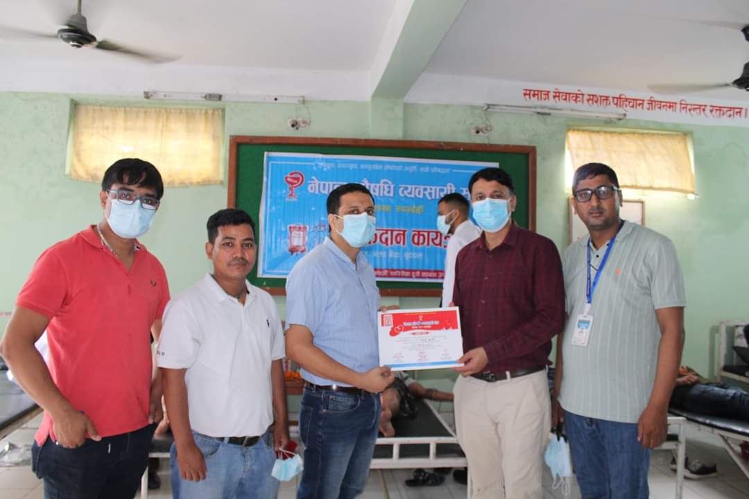 बुटवल । नेपाल औषधि व्यावसायी संघले ४८ औं स्थापना दिवसको अवसरमा रुपन्देही शाखामा वृहत रक्तदान कार्यक्रम सम्पन्न गरेको छ ।