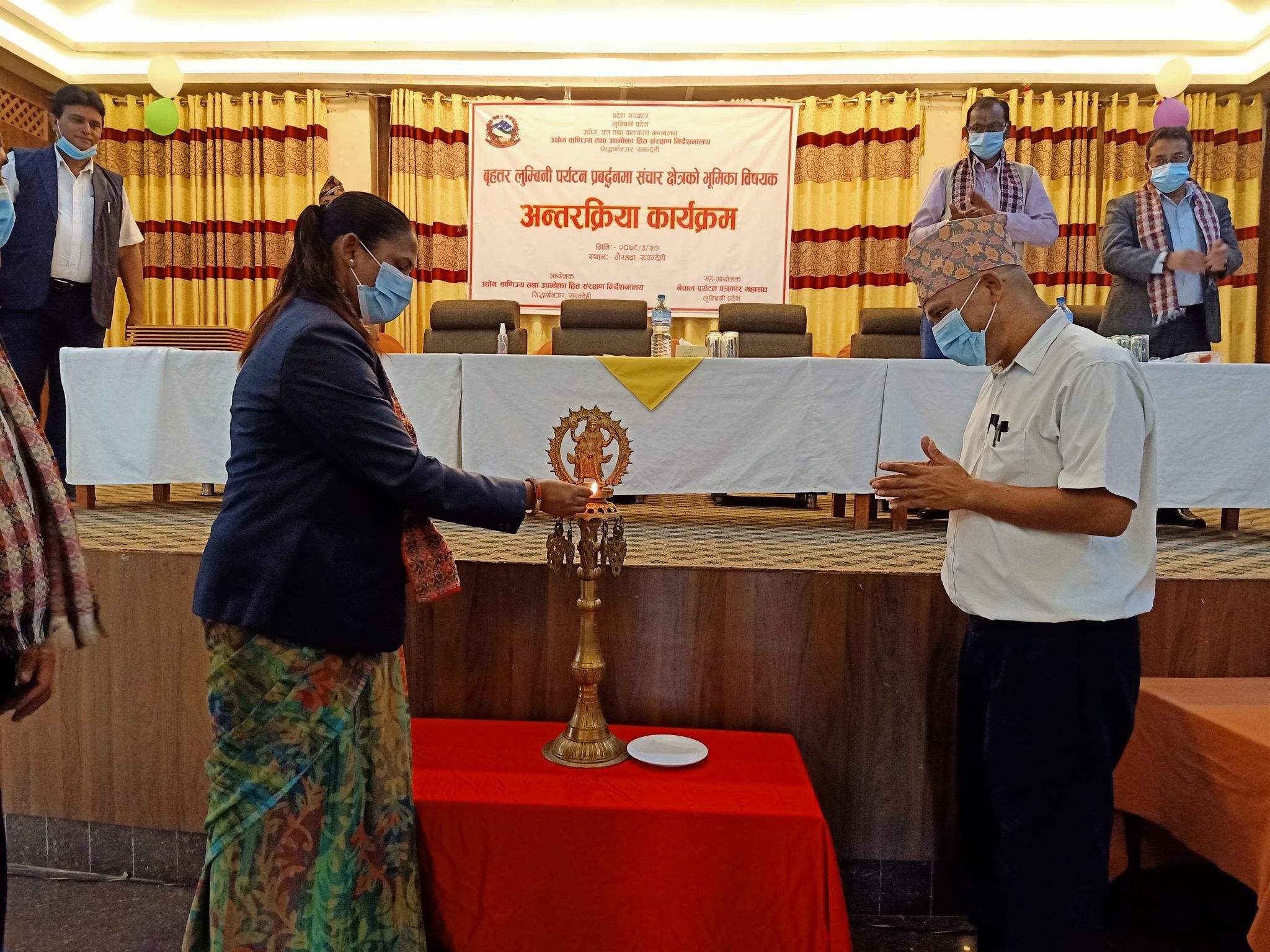 कार्यक्रममा लुम्बिनी सास्कृतिक नगरपालिकाका नगरप्रमुख मनमोहन चौधरी, निर्देशनालयका निर्देशक यम बहादुर कुवर, मन्त्रालयका सचिव डा राजेन्द्र केसी, लुम्बिनी विकास कोषका कोषाध्यक्ष सुरेद्रमुनि शाक्य, नेपाल पर्यटन पत्रकार महासंघ, लुम्बिनी प्रदेशका अध्यक्ष भुवन कार्की, प्रख्यात बन्जाडे, माधव ढुगाना, निरु गौतम, विजय सागर श्रेष्ठ, अनिल कुमार तिवारी, पत्रकार महासंघ रुपन्देहीकी उपाध्यक्ष अमृता अनमोल लगायतले आ आफ्नो धारणा राखेका थिए ।